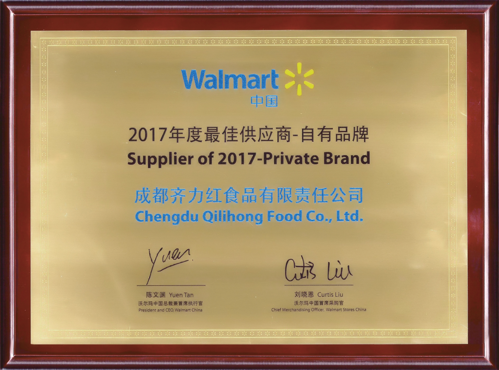 荣获沃尔玛“年度最佳供应商”大奖 2018年在沃尔玛供应商峰会上,一举荣获沃尔玛中国“2017年度最佳供应商”大奖。 由沃尔玛中国区总裁陈文渊亲自颁发, 这是干果行业在沃尔玛20年以来售价获此殊荣。